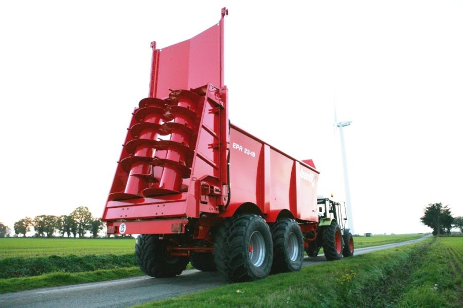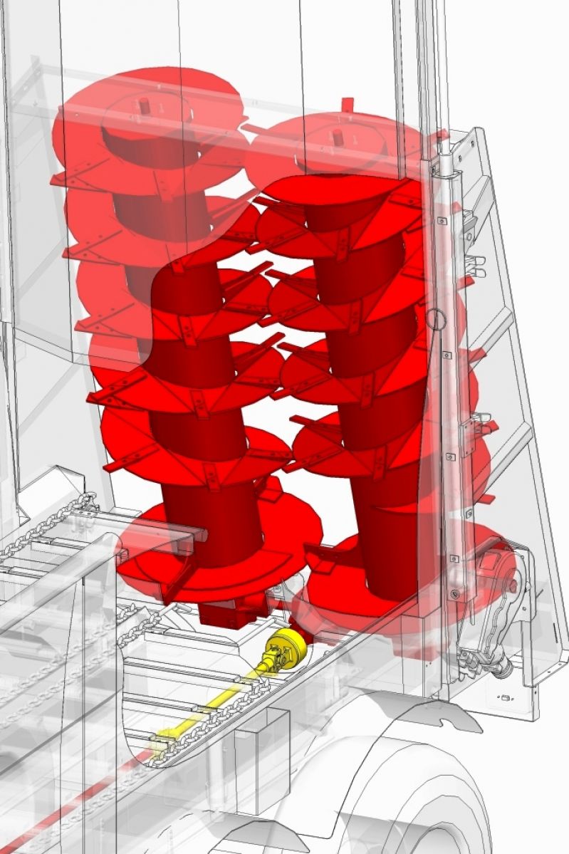 El dispositivo de esparcido EPAN 8: 2 tornillos verticales para un esparcido ancho y gran caudal. Sistema disponible en opción en las esparcidoras EPR.