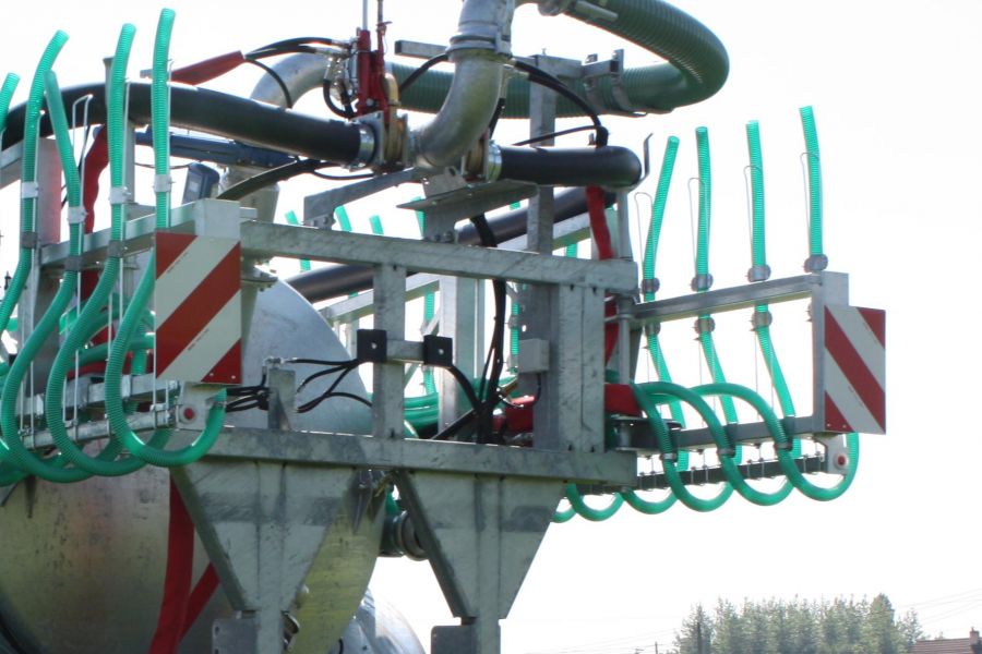 Precise spreading and work rate with any kind of products with a working width from 12 to 24 m : from 40 to 96 outlets according to the model, possibility of using 1 or 2 Exacut grinder-distributors, emptying rate starting from 9 m³/ha, high quality of work, quality crosswise distribution above 10 m³/ha, reduced odours.