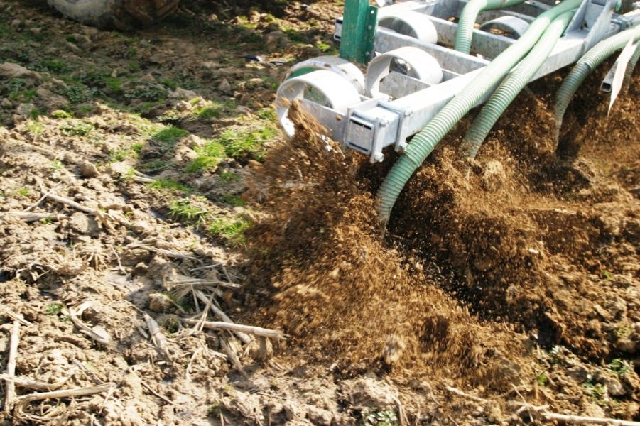 Optimisation of mechanisation costs and reduction in fertiliser inputs with a working width from 3.3 to 5.7 m : from 11 to 19 tines according to the model, possibility of using a grinder distributor, emptying rate from 5 m³/ha, high quality of work, quality crosswise distribution above 10 m³/ha, no more odours or nitrogen losses.